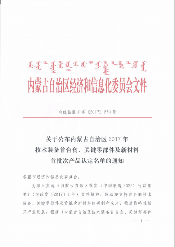 久科环保煤化工高含盐难降解有机废水处理与分质盐资源化技术及成套设备入选内蒙古自治区2017年技术装备首台套、关键零部件及新材料首批次产品认定名单