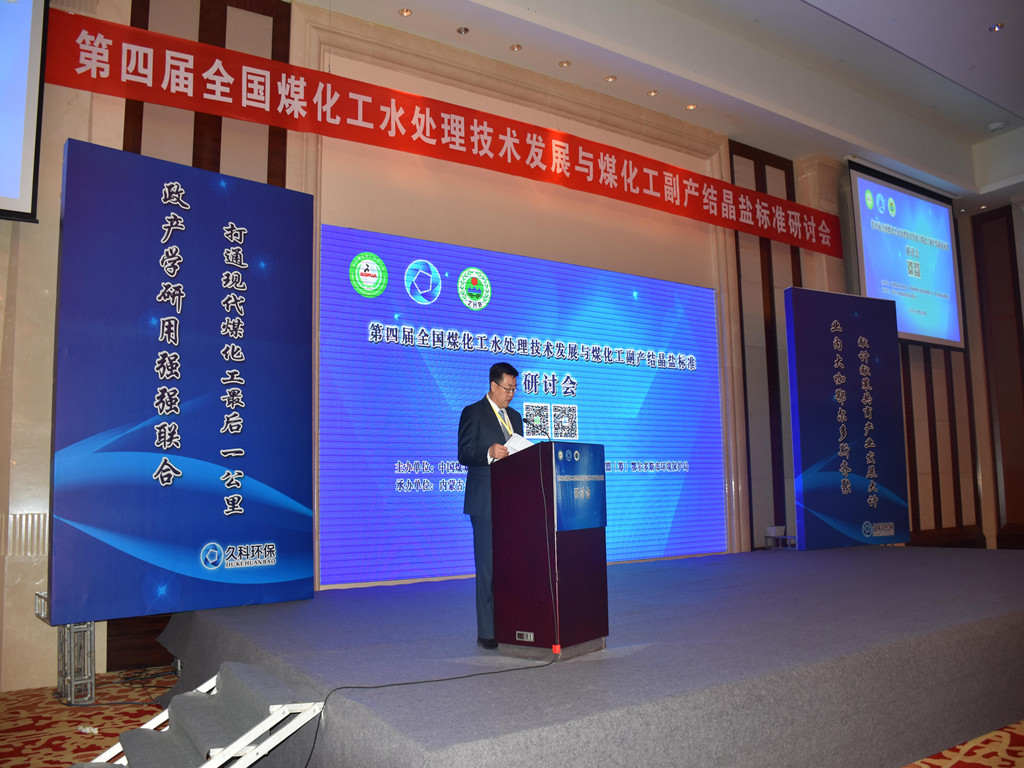 5月9日至10日,由中国煤炭加工利用协会、中国新型煤化工绿色发展联盟(筹)、鄂尔多斯市环保局联合主办,久科环保承办第四届全国煤化工水处理技术发展与煤化工副产结晶盐标准研讨会在鄂尔多斯举行。中国煤炭加工利用协会张绍强理事长主持了会议,鄂尔多斯市人民政府副秘书长崔永忠为会议开幕致辞。久科环保董事长李战胜代表承办单位做了致辞。