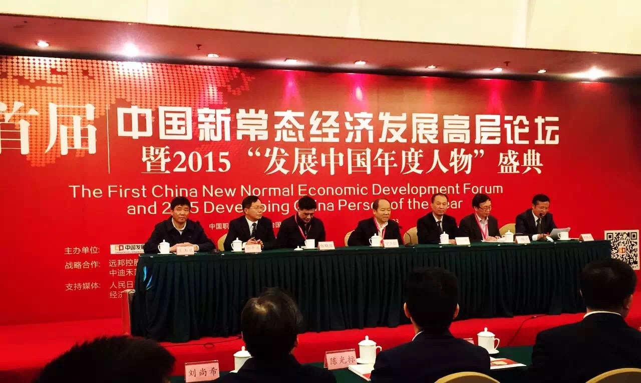 2016年4月23日,由国家发改委中国经济导报社、国家发改委中国发展网主办的首届中国新常态经济发展高层论坛暨2015“发展中国年度人物”盛典在北京钓鱼台国宾馆/中国职工之家隆重举行。全同政协第十一届副主席阿不来提·阿不都热西提发来贺信,国家发展改革委原副主任、中国国际经济交流中心副理事张晓强、中央政策研究室原副主任、中国国际经济交流中心副理事长郑新立、中国人民银行研究局首席研究员邹平座、国家发展改革委宏观经济研究院副院长马晓河作论坛主旨演讲,来自产学研究等各领域的数百位嘉宾出席了本届论坛。